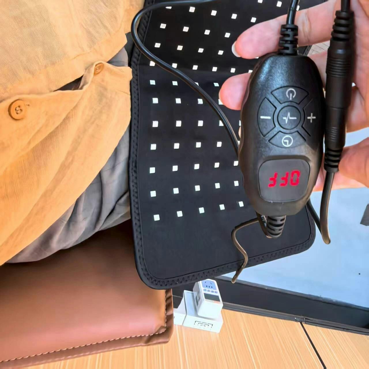 Just wrap it on your knees, arms or shoulders and let the FluxNanopad's lights do the work.